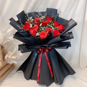 – 11 stalks of pink roses with greenery and floral fillers